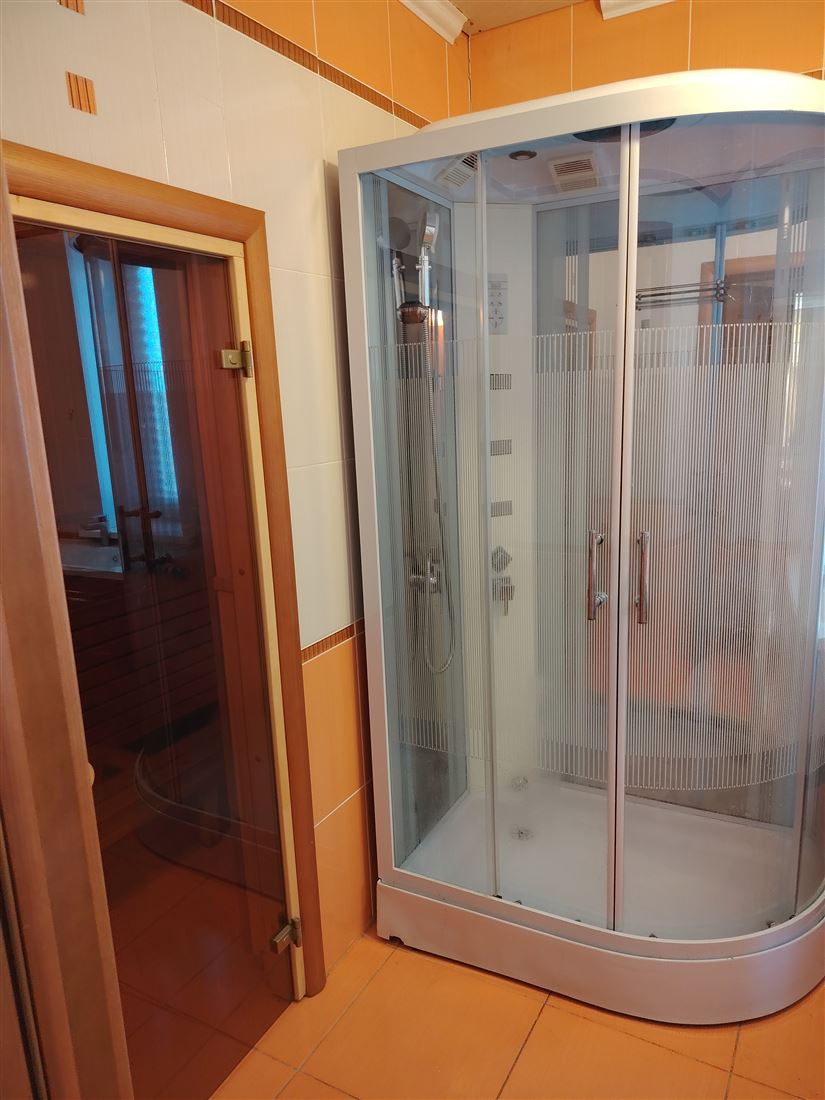 Дом для зимнего проживания, отопление на первом этаже - теплые полы водяные с регулированием, на втором этаже радиаторы. Дом очень теплый, зимой включали только полы, достаточно тепло. Водоснабжение центральное, оплата по счетчику. Для поливки есть колодец на территории. Канализация – септик (бумагу не кидаем). Свет15 Квт. Осенью подвели к участку газ. Котел в котельной стоит, подключение котла летом. В доме два санузла на первом и втором этажах, новая душевая кабина, сауна с котлом, можно париться веником, очень жаркая сауна. Вода горячая от бойлера на 100л. Зимой можно топить камин, но только для души, т.к жарко без камина.