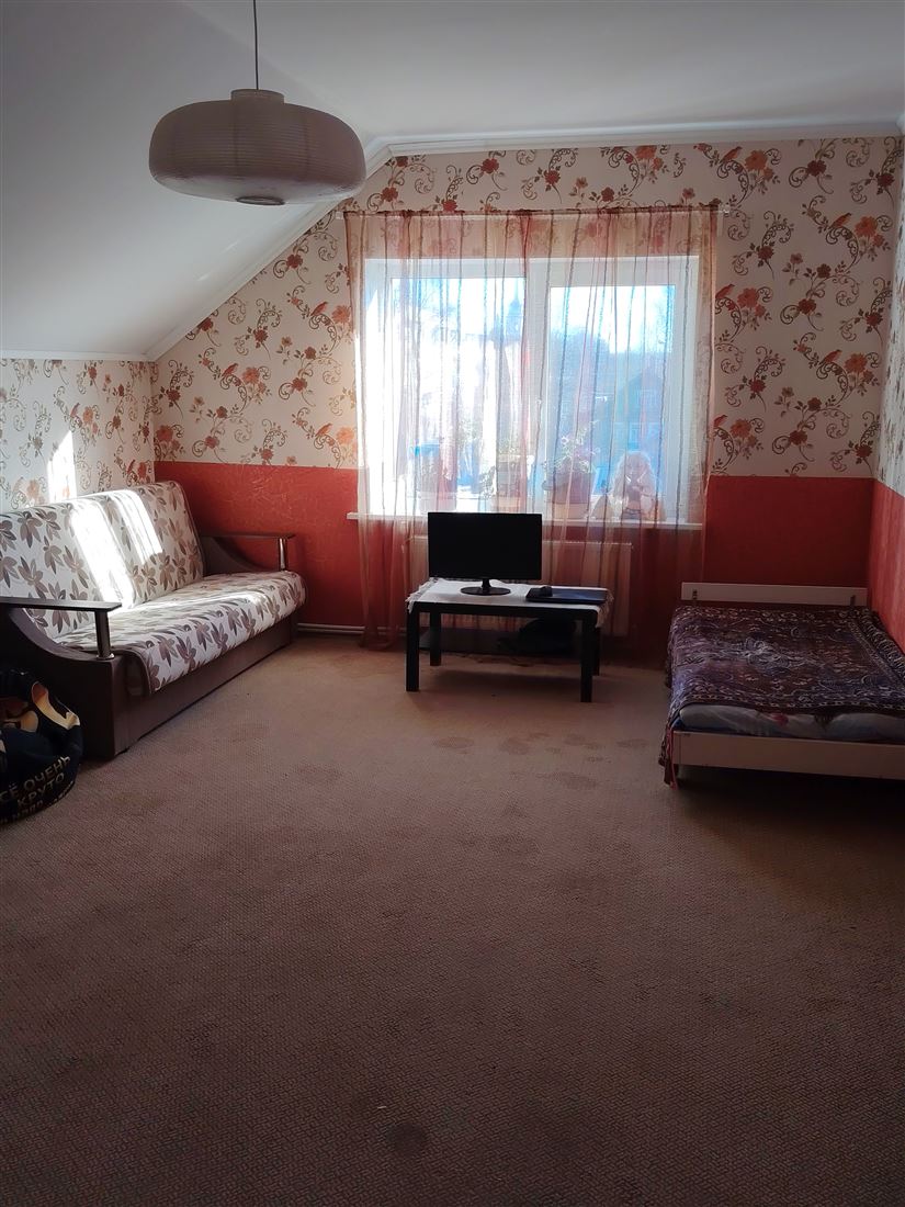 На первом этаже кухня-гостиная просторная с камином, гостевая комната.