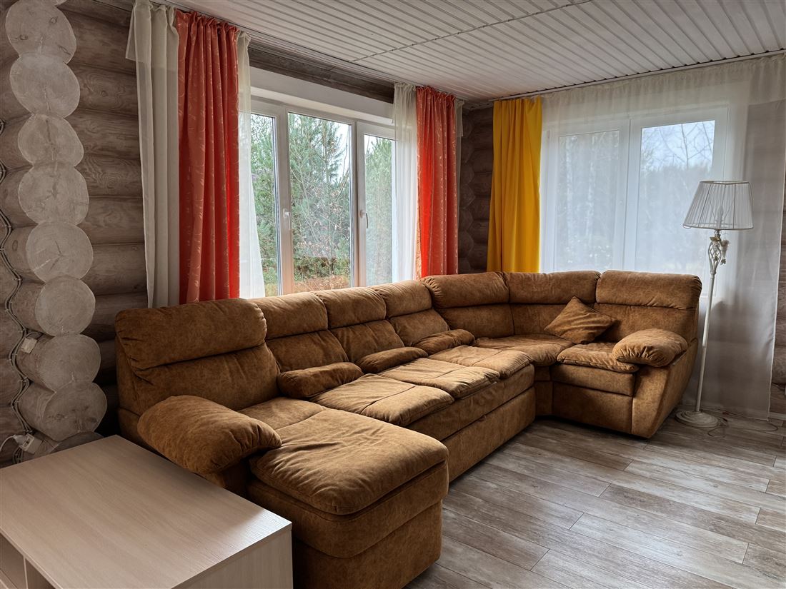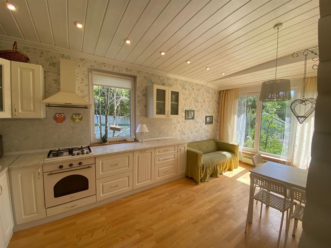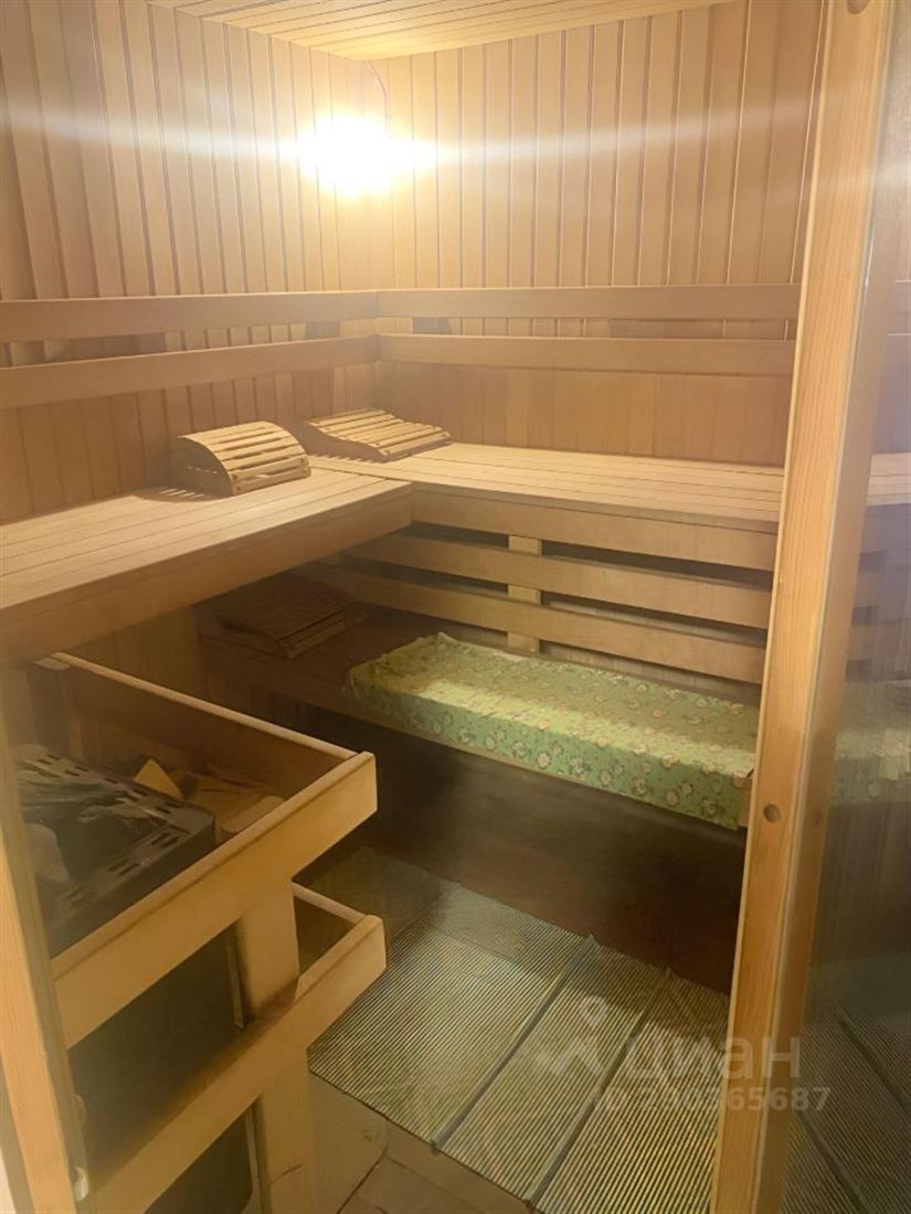 На 1-м этаже комната отдыха с кухней, сауна с дровяной печью Harvia, санузел, душевая. Теплые полы.