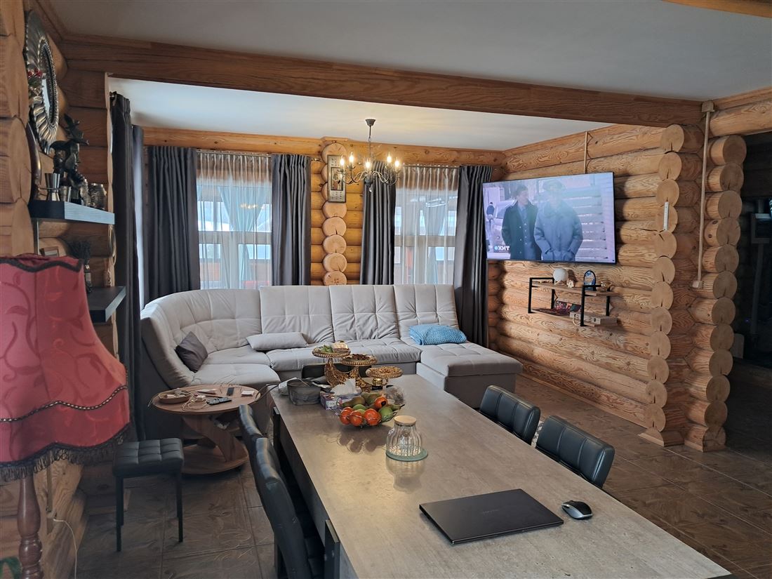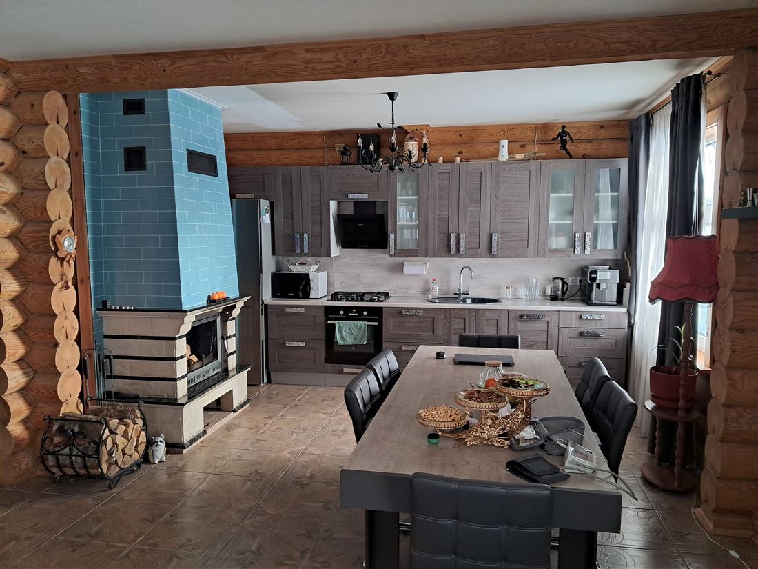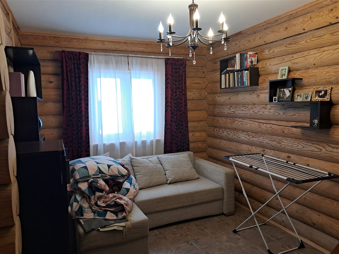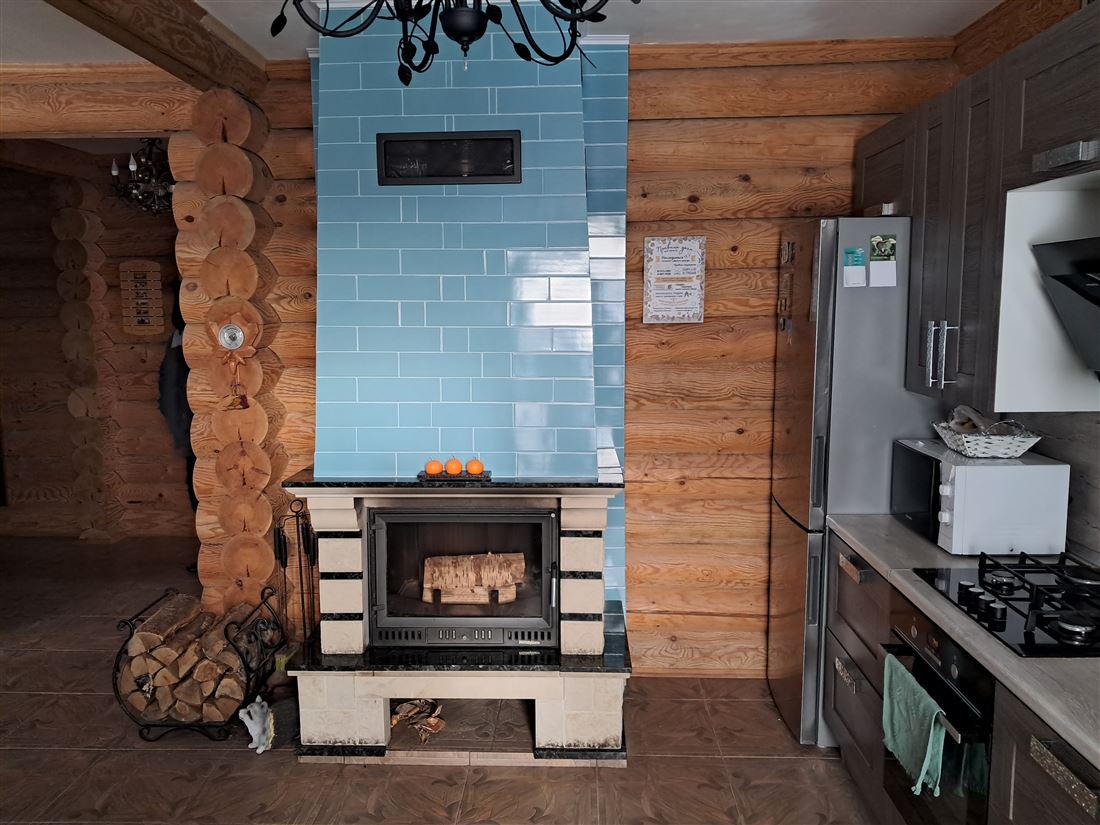 В доме четыре комнаты, каждая из которых оформлена с вниманием к деталям. Есть большая гардеробная. Установлено цифровое ТВ, обеспечивающее комфортное проживание. Для удобства предусмотрены все необходимые коммуникации: водоснабжение осуществляется через скважину 110 м. глубины а канализация — септик. Отопление осуществляется электрическим котлом и камином, что создает особую атмосферу уюта и тепла.