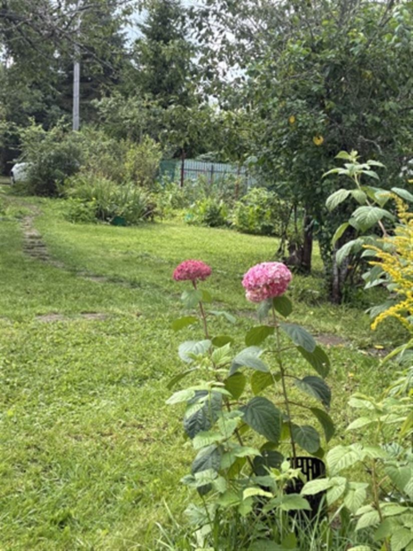 Из посадок - вкусные яблони (с середины лета и до поздней осени) и сливы, вишня, крыжовник, орех, малина, ежевика, смородина чёрная,красная,розовая, жимолость.Гортензии белые, розовые, кусты пионов малиновые, розовые, белые, синие ирисы, молодые туи. В 10 мин. ходьбы продуктовый магазин и магазин промтоваров. Привозят фермер.продукты, есть пятерочка и магнит.Некоторые соседи на линии живут круглый год. Межевание есть. ЧВ 9 тыс.в год.