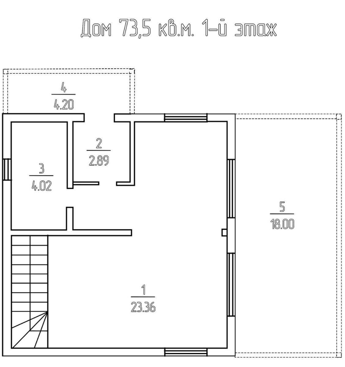 1 этаж: кухня 10 кв. см., гостиная 13,35 кв. м, тамбур - 2,5 кв. м.,
