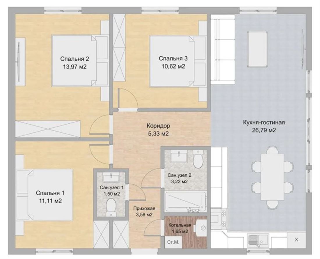 ▶ Трехкомнатный дoм 80 м2 с пред чистовой отделкой