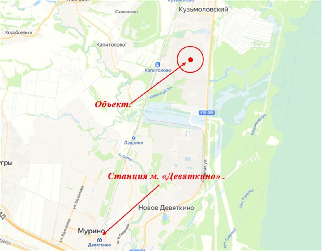 • Расстояние от станции м. «Девяткино»: 11,7 км.