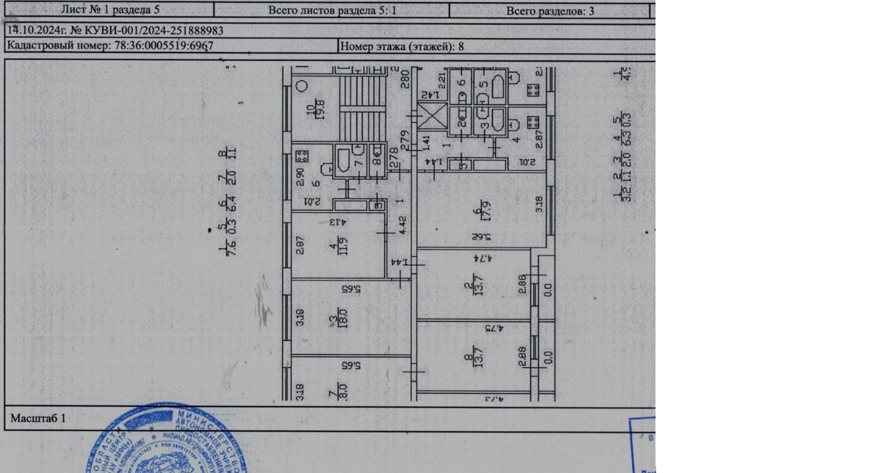 Продается 1/2 доля в квартире, кадастровый номер 78:36:0005519:6967, общая площадь квартиры 61 кв.м.