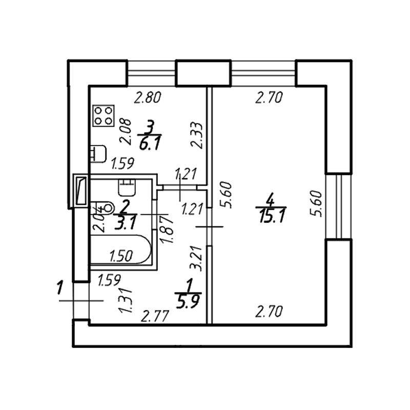 | Площадь кухни | 6.1 кв.м. |