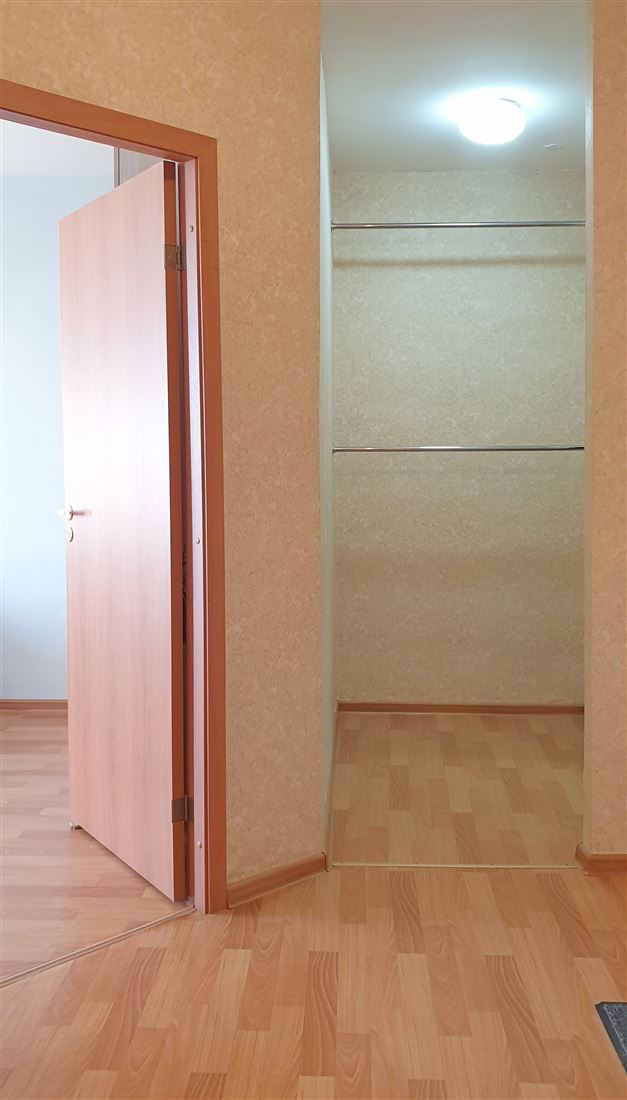 Много мест хранения: в квартире два балкона примерно одинаковой площади (~2,4м.кв.): на кухне и в комнате. Оба балкона с остеклением. Рядом с прихожей расположена вместительная гардеробная с зеркалом в полный рост. В санузле отделка стен и пола выполнена плиткой, подвесной потолок с точечными светильниками.