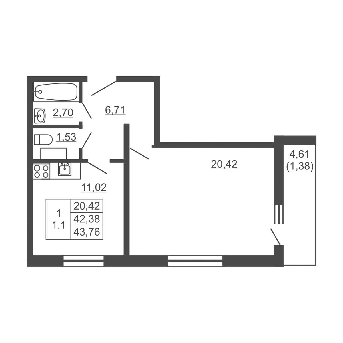 Продается однокомнатная квартира в жилом комплексе «Тандем» от ГК СТОУН нa 16 этаже. Общaя площадь cоcтaвляeт 43.76 кв. м.