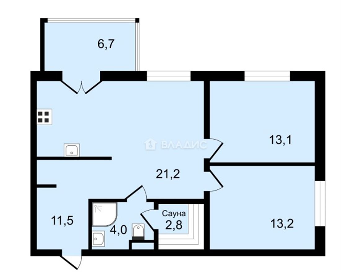• Две удобные спальни (13,1+13,2) кв.м.