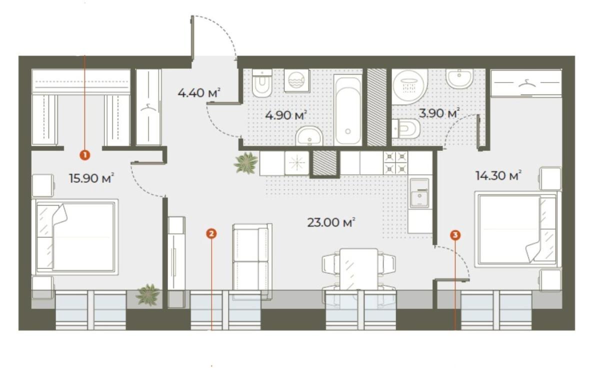 | Площадь | 66.4 кв.м. |