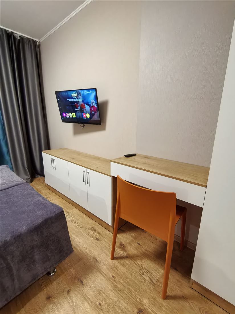 Укомплектована двумя кроватями (при необходимости объединяются в одну кинг сайз), Шкаф, Кухонный гарнитур, Холодильник, Стиральная машина, плита, СВЧ. Посуда прилагается. Фен. Идеальное состояние .Готова к заселению.