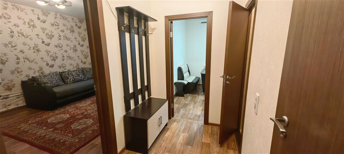 В квартире выполнен косметический ремонт. Просторная кухня площадью 11 м² оснащена необходимой мебелью и техникой. В комнате установлен телевизор.