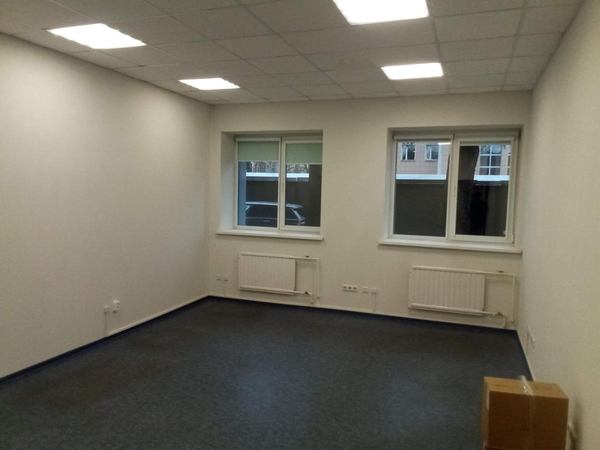 Вход в офис - общий со двора, в офисе нет кондиционирования, центральное отопление, пожарная сигнализация.