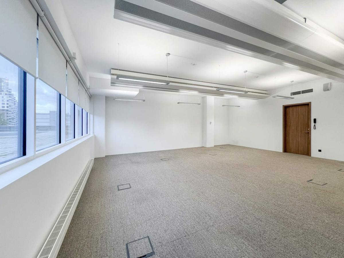 Вход в офис - общий с улицы. В здании есть лифт, охрана, в офисе центральное кондиционирование, вентиляция офиса - приточная, центральное отопление, спринклерная система пожаротушения.