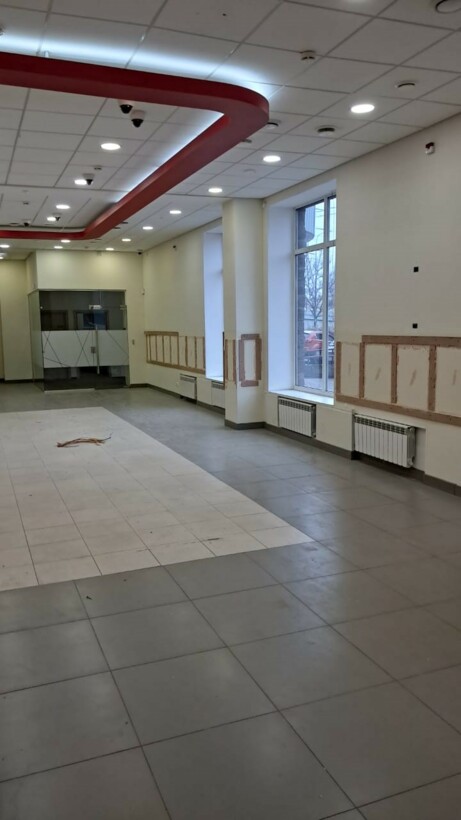 Помещение с отделкой, в настоящее время не используется, два входа с фасада, предусмотрена стихийная парковка вдоль здания.