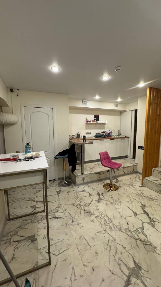 удобная планировка: входная зона с возможностью размещения кабинета администратора и местом ожидания для клиентов, кухня, 5 мокрых точек