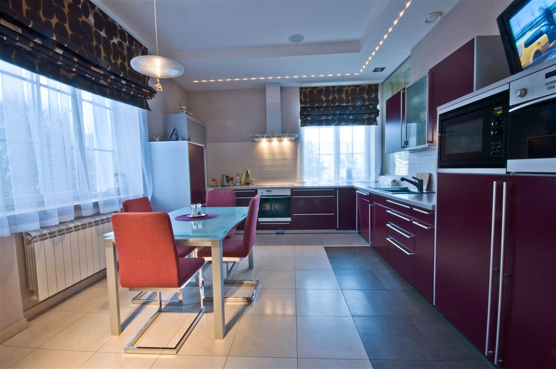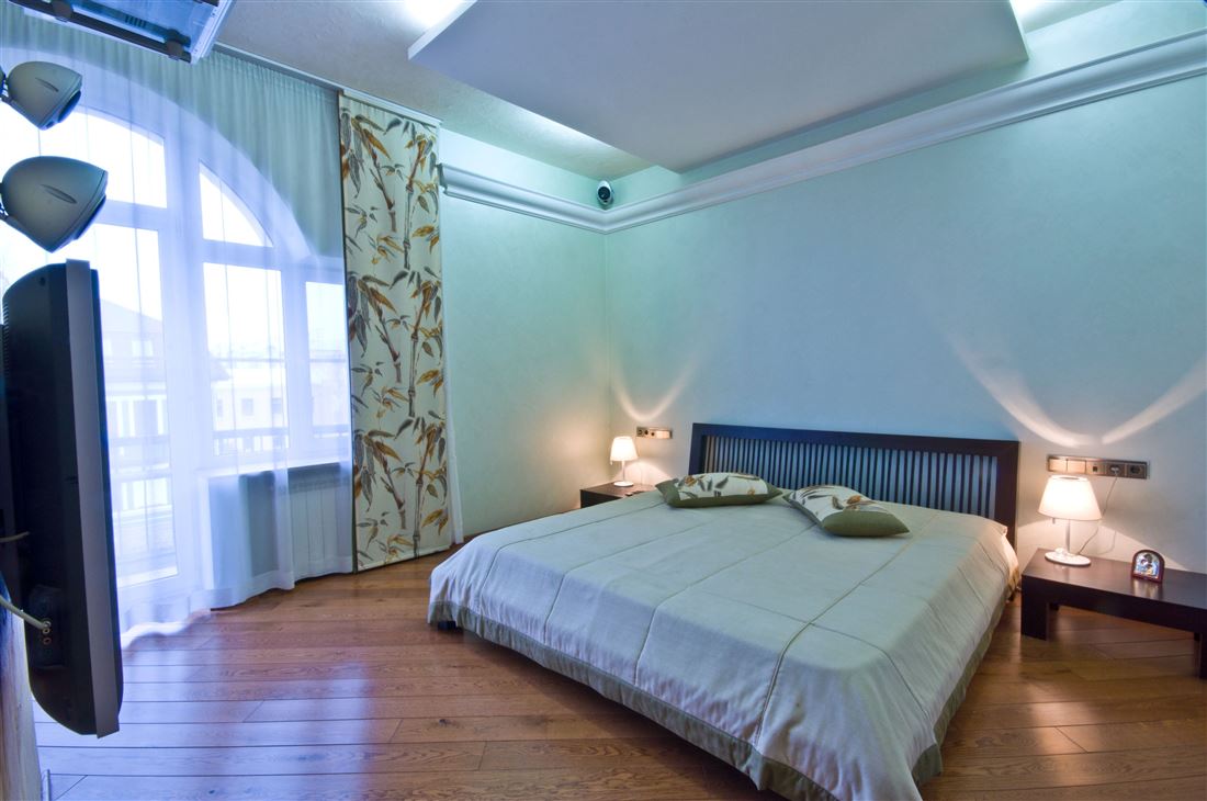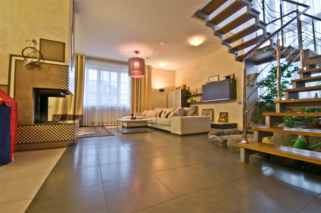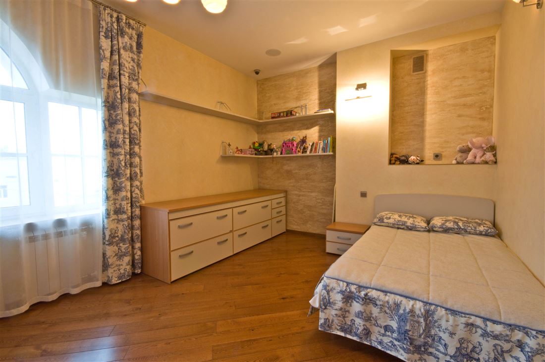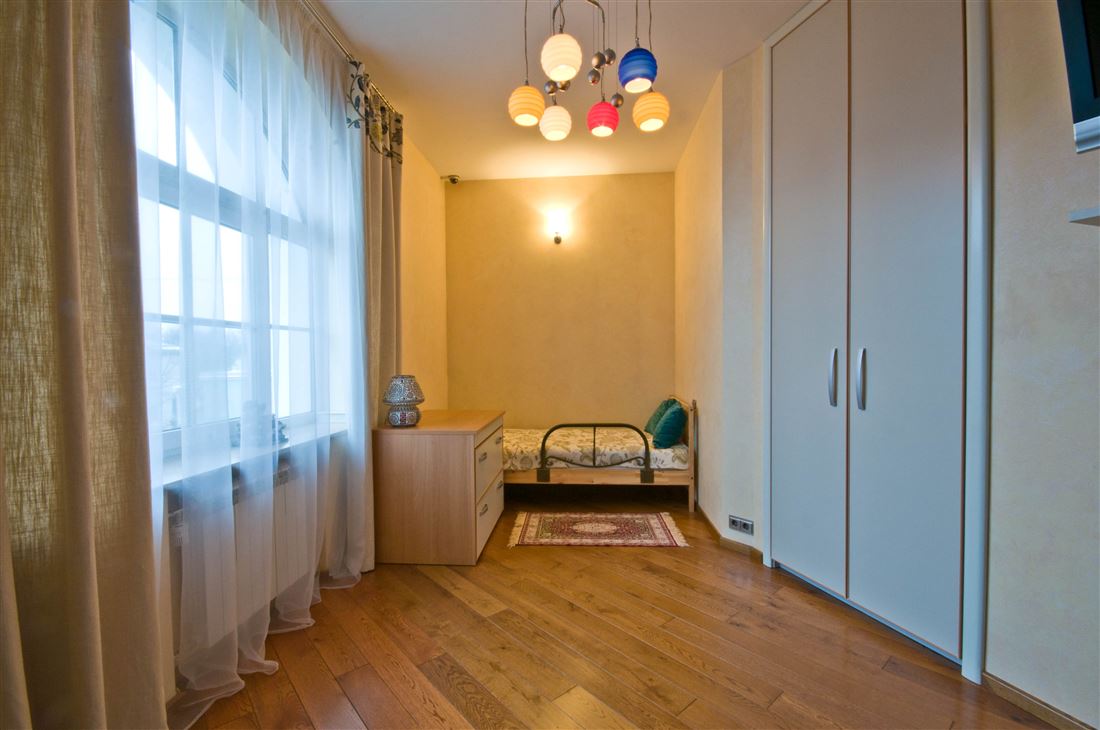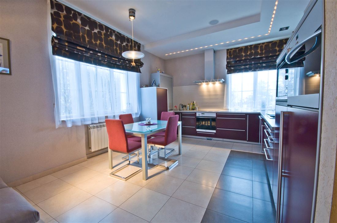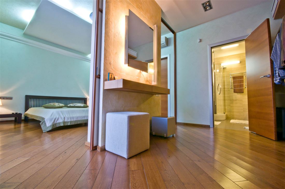 Современный интерьер, укомплектован дизайнерской мебелью и сантехническим оборудованием, мировых производителей. Авторские витражи и роспись на стенах выполнены профессиональными мастерами. Кухня и бытовая техника "Miele".