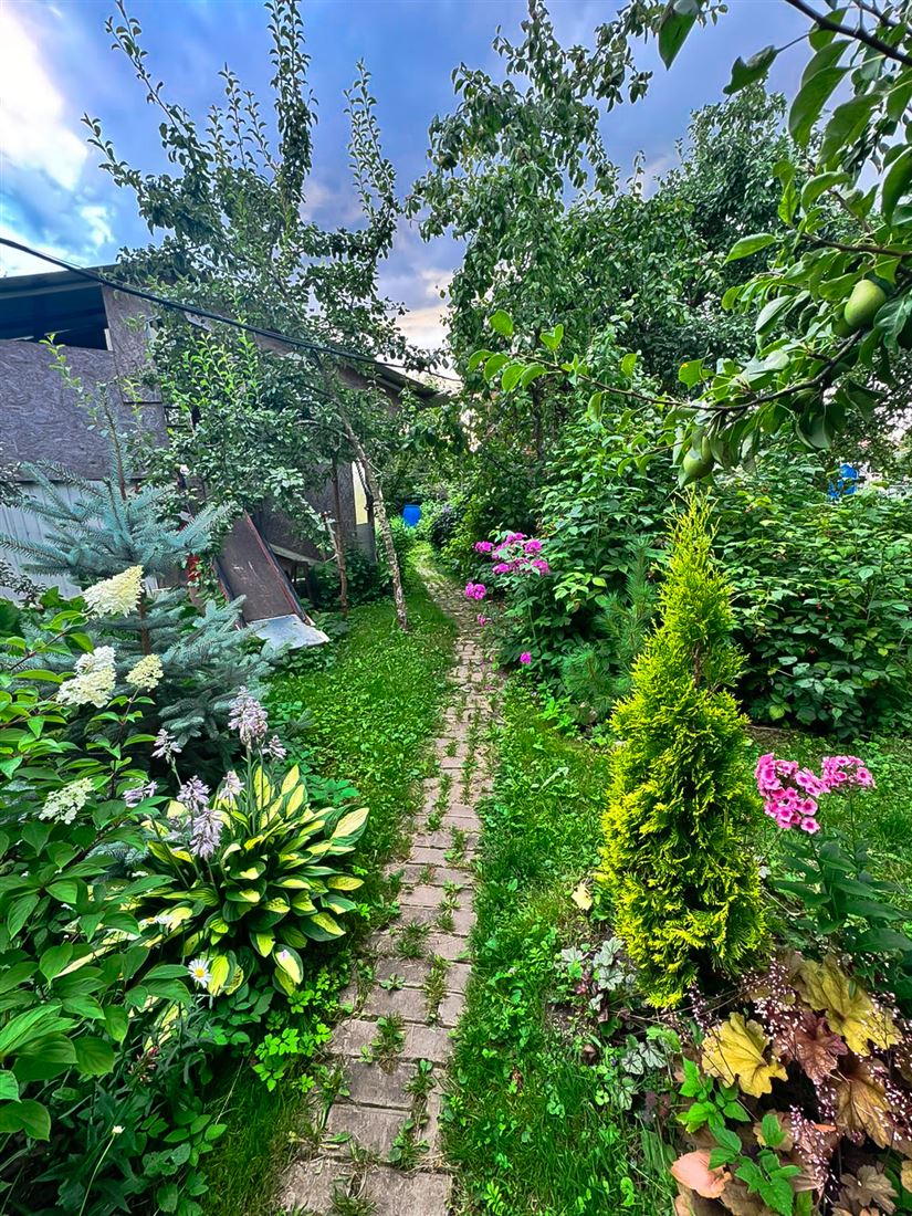 Участок высокий, сухой , окружен зеленью , на нем расположен прекрасный фруктовый сад , много плодовых кустарников и декоративных растений .