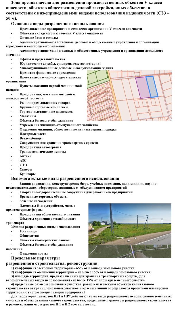 Зона предназначена для размещения производственных объектов V класса опасности, объектов общественно-деловой застройки, иных объектов